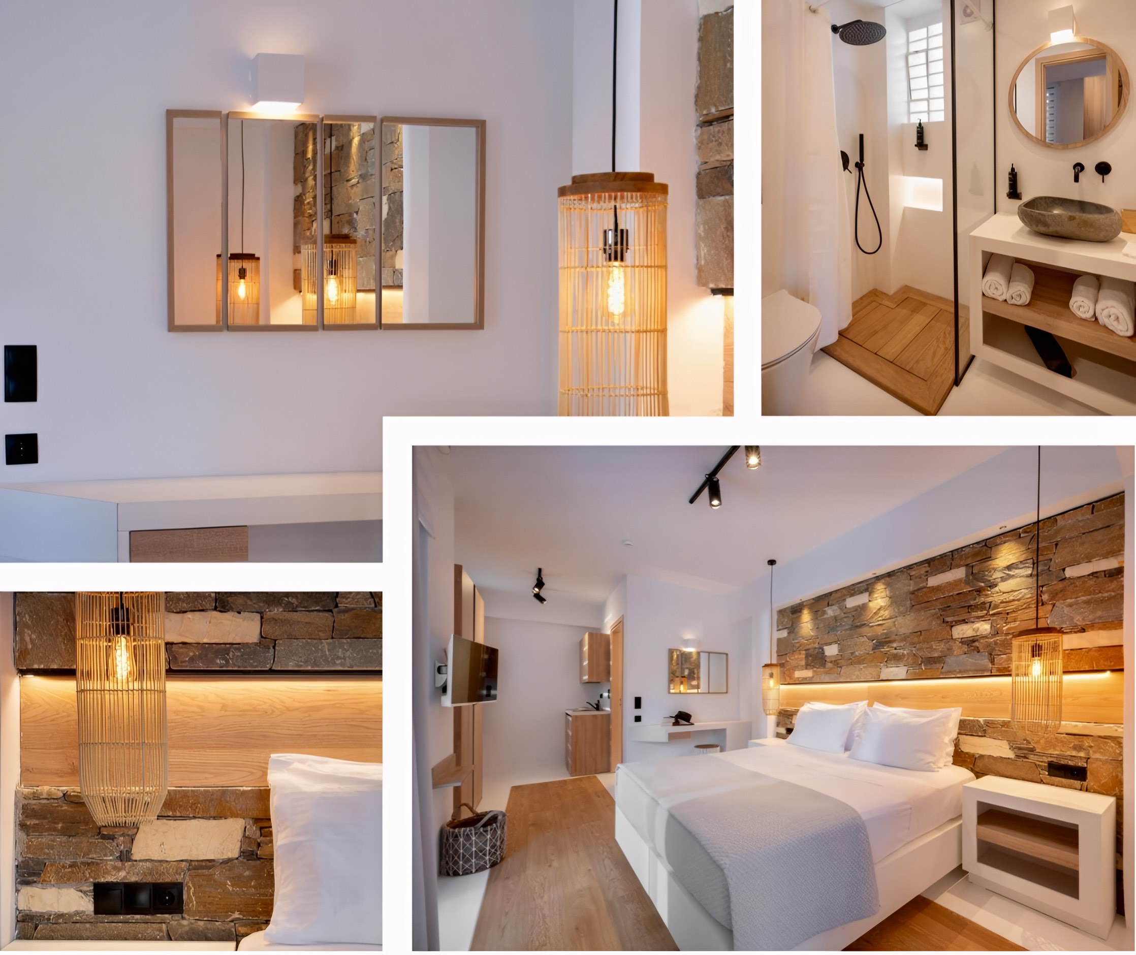 Stay at the newly opened Evia Silence Lighthouse, just steps away—boho-chic, sea-view rooms and total serenity awaits.